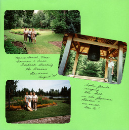 Booklet - A scrapbook page with photographs and information from a trip made by members of the Chatsworth Country Club to the Devonian gardens, Devon, AB. Pictured are: Top left - Mavis Tovell, Vera Cameron and Anne Farkash. Middle - Sophie Jacula |