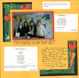Booklet - A photograph of members selling baked goods to raise funds, two recipes and a written explanation regarding the Chatsworth Country Club cookbook, near Vermilion, AB. Pictured are: Sophie Jacula, Johanna Wasylik, Jean Jacula and Vera Cameron |
