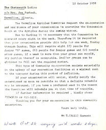 Summary Content type Content type Image Collection(s) Collection(s) Alberta Women's Memory Project Resource Type Resource Type Still image Genre Genre photographs Origin Information Origin Information Date Created/Date Issued 1978-10-12 Date Modified 2012-11-06 Abstract/Description Description / Synopsis Description / Synopsis Letter - To the Chatsworth Ladies from Wm T. Garnett of the Vermilion Agriplex Committee, Vermilion, AB Publication/Container Information Publication Title Publication Title Chatsworth Physical Description Physical Form Physical Form image/jpeg Relationships Related Item Related Item Relationship Type host Title Chatsworth Relationship Type host Title Alberta Women's Memory Project Identifiers Local Identifier Local Identifier AWMP Handle Handle Handle placeholder Notes Note Note Link Title: 1947 Access and Rights Use and Reproduction Use and Reproduction Subject to The Copyright Act Rights Statement Rights Statement IN COPYRIGHT - NON-COMMERCIAL USE PERMITTED Subjects and Classifications Subject Topic Subject Topic Personal Life Women Organization Family Life Chatsworth Country Club Vermilion, AB Vermilion Agriplex Committee Voluntarism Women Farmers Society