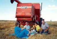 Verna Davis, Doris Hanson, Joe Rosich and George Rosich stoopped for lunch during harvest |