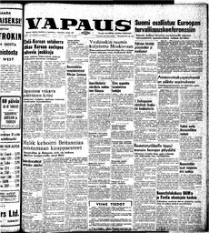 Summary Content type Content type Page Collection(s) Collection(s) Vapaus, November 25, 1954 Identifiers Handle Handle Handle placeholder